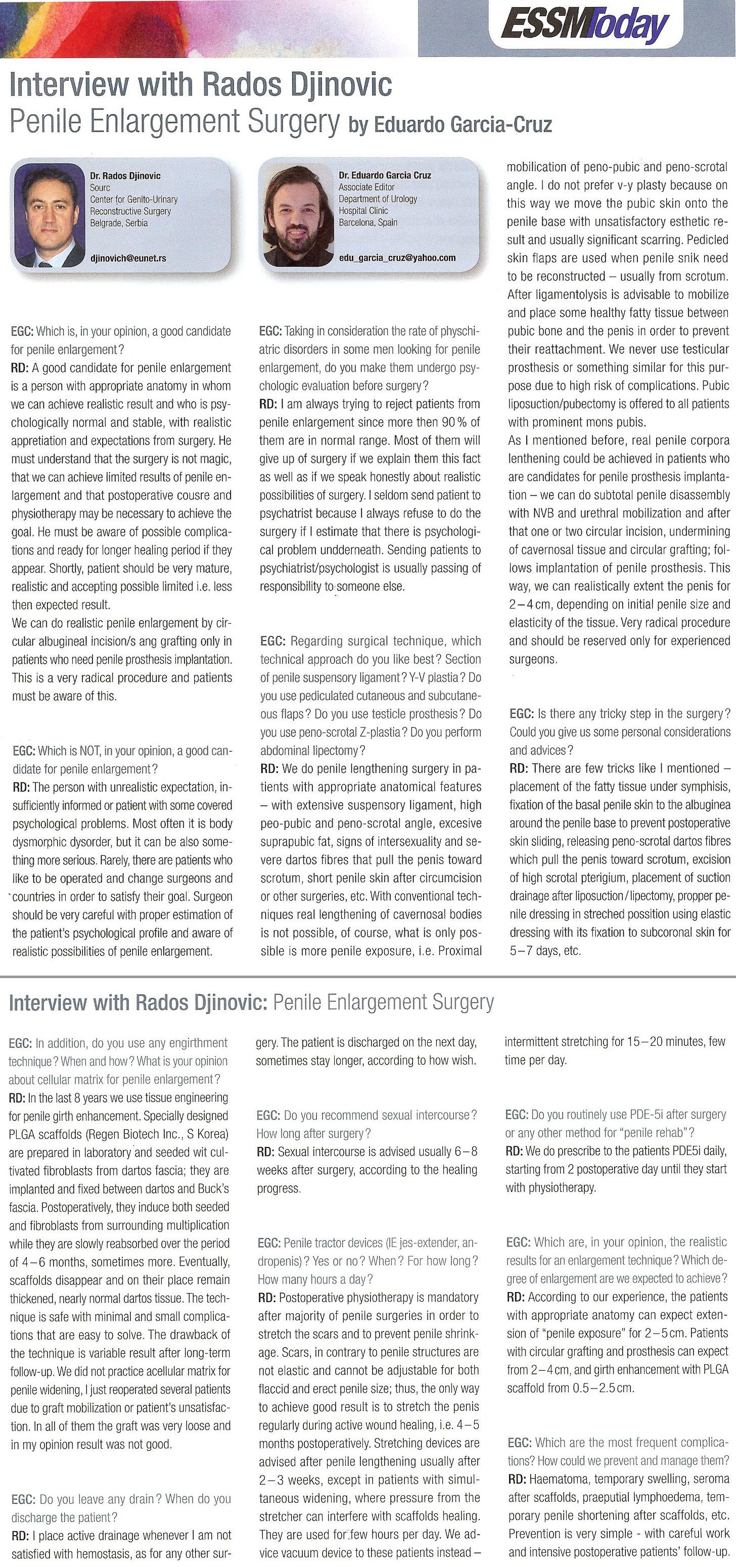 by European Society of Sexual Medicine Today Magazine, Milan, Italy, 3 December 2011