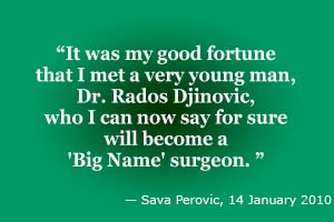 However, in early 2003 Dr Djinovic traded his plans to move to the United States (and his “Green Card”) in exchange for the priceless opportunity of a lifetime — personal hands-on surgery training in the very latest and most advanced surgical procedures and surgical techniques by Professor Sava V Perovic, the best surgeon in Serbia's history and the man widely recognized by experts as the leading urological surgeon of our time.