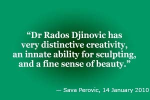 Rados Djinovic's foremost accomplishment was saving the Sava Perovic Art of urological surgery after the death of the preeminent Professor. Six years mastering the art with Dr Perovic and five more years continually developing, expanding and advancing it has clearly shown the art gets supreme surgical results for patients.